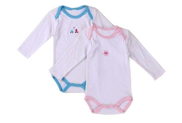 Producción | El blanco puro del mameluco del color sólido del bebé del longsleeve del algodón con el azul y el rosa imprimen |